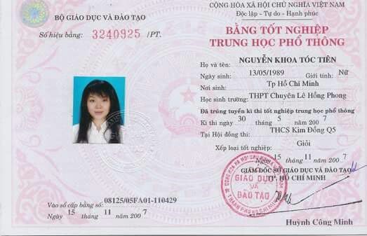 Các bạn có thể sử dụng tấm Bằng THPT Quy NHơn – Bình Định này đi xin việc làm , nâng bằng lái xe ,đi học, đi du học , XKLĐ (xuất khẩu lao động) khắp mọi nơi.